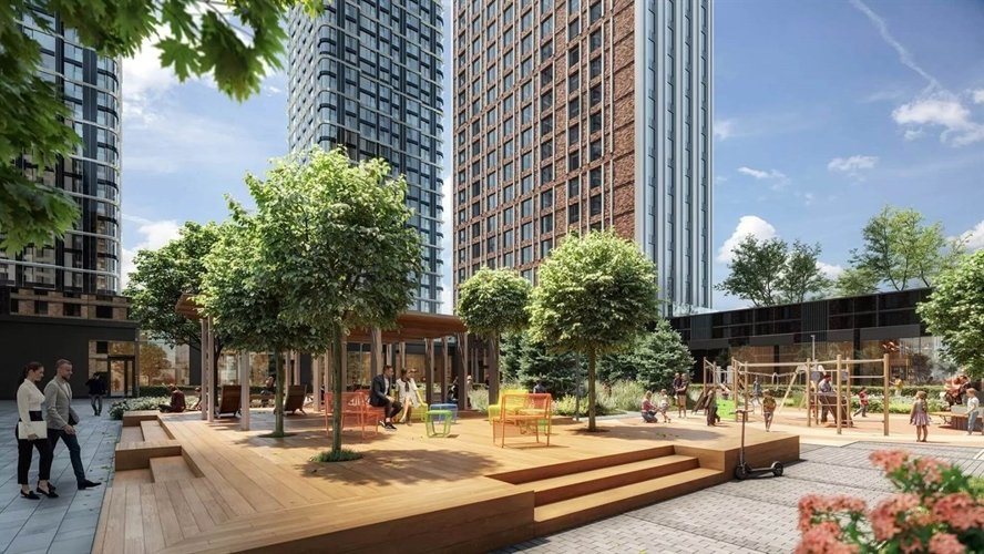 Жилой комплекс комфорт/бизнес-класса возводится в уютном районе Покровское-Стрешнево, между Волоколамским шоссе и сосновым лесом. ЖК отличается эффектной квартальной застройкой в стиле Нью-Йорка. Здесь будет реализована полноценная инфраструктура совместно с благоустроенной набережной и большой парковой территорией с оригинальным озеленением.