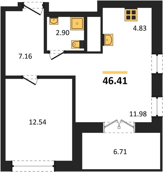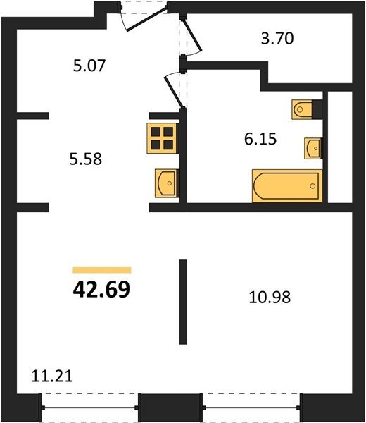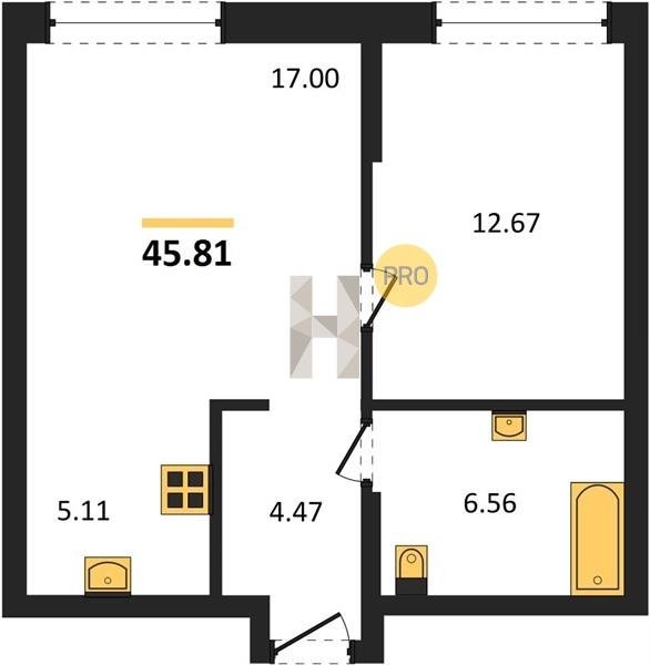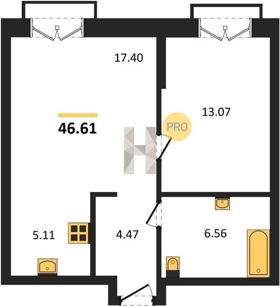 В ЖК предлагается широкий выбор апартаментов: от уютных студий площадью 23,8 кв. м до
