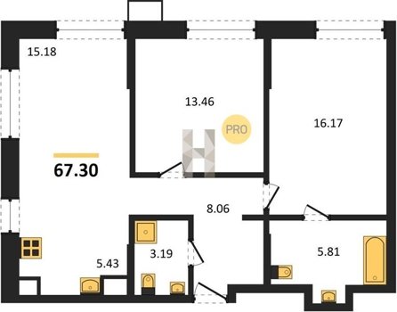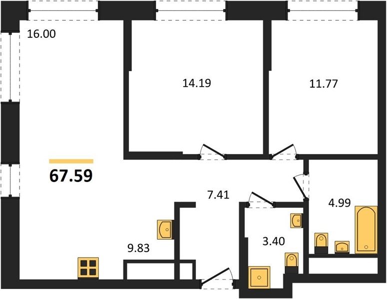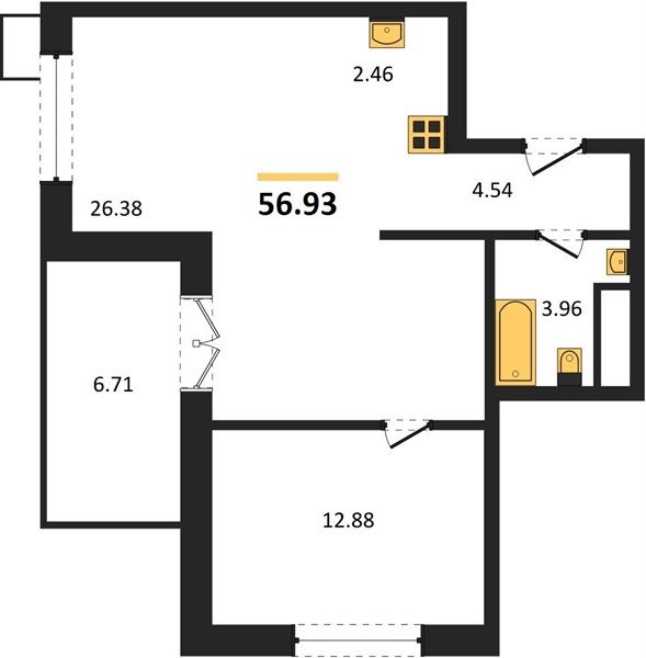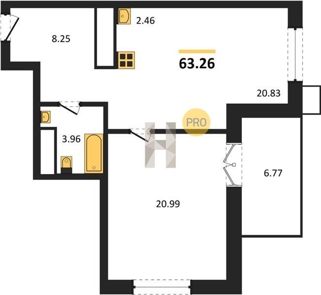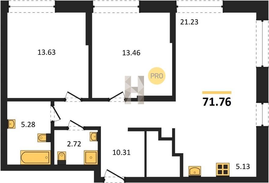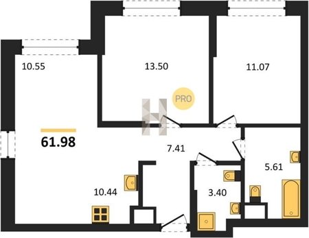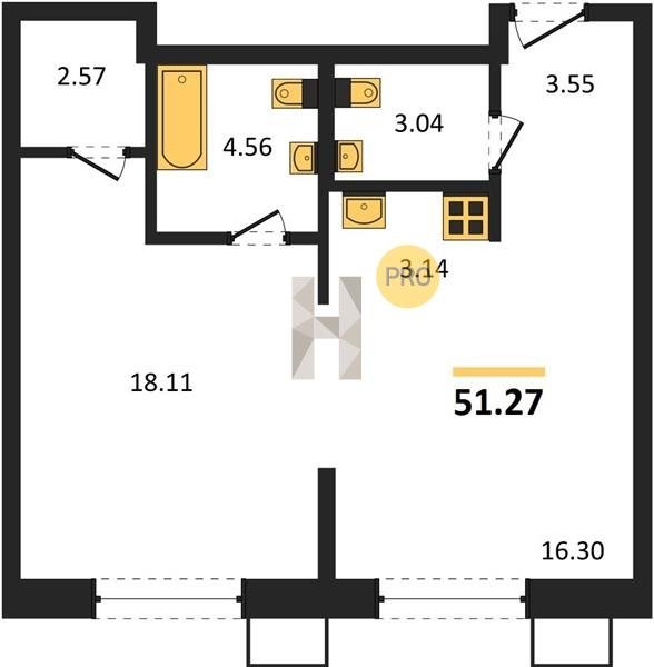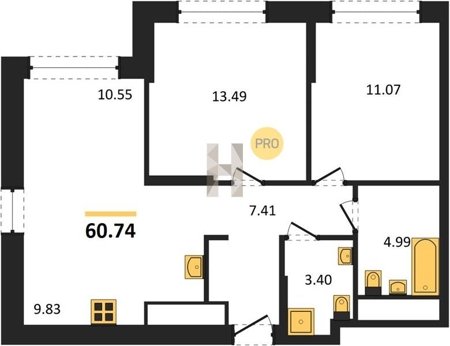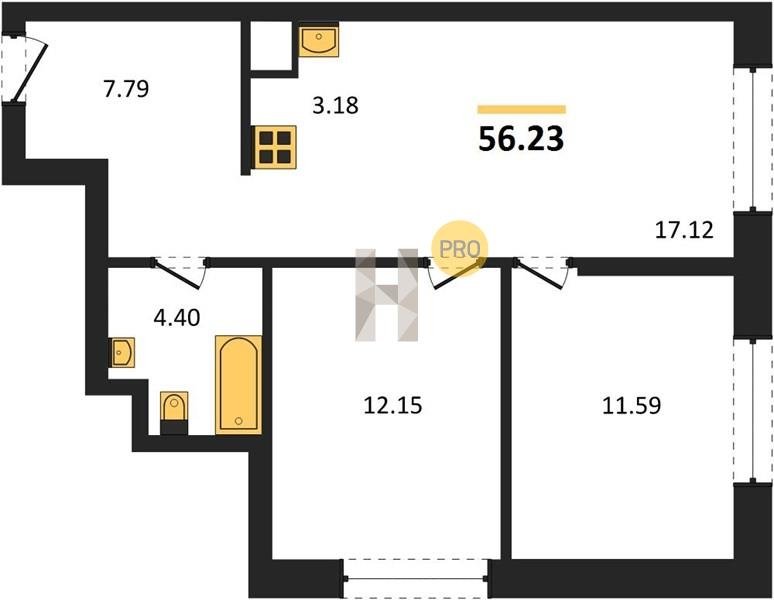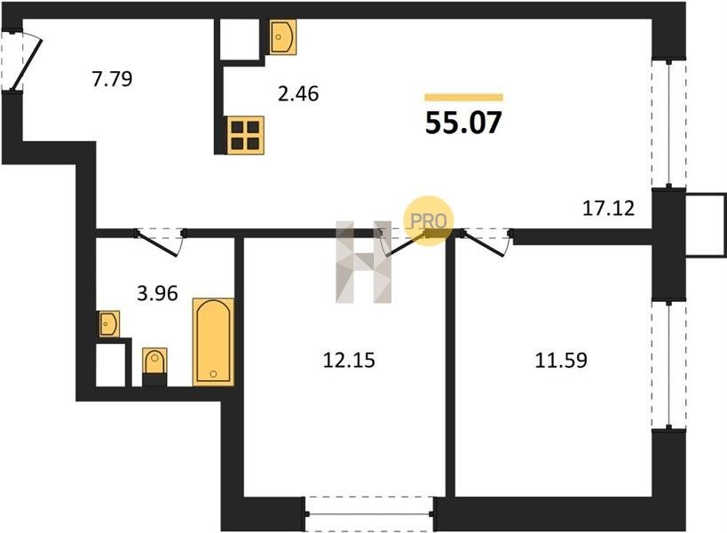 Площадь от 55.07 м2