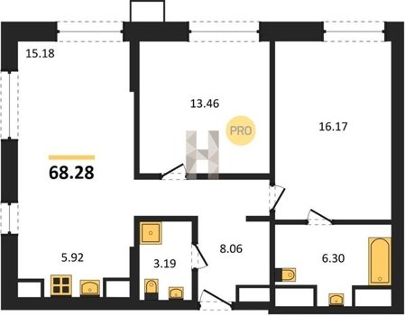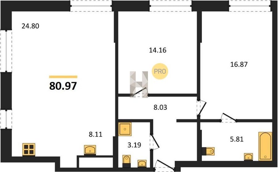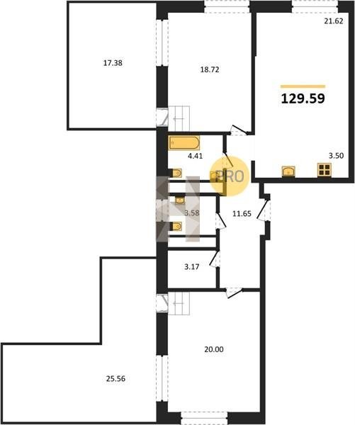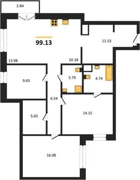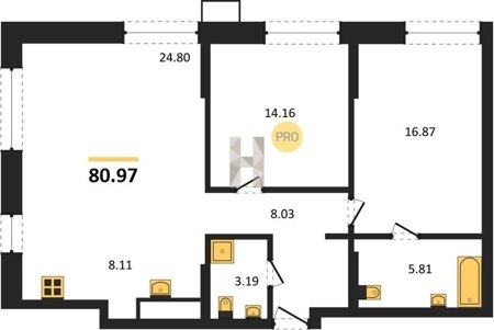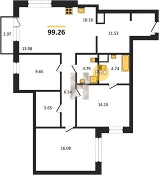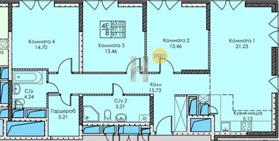 Площадь от 96.96 м2