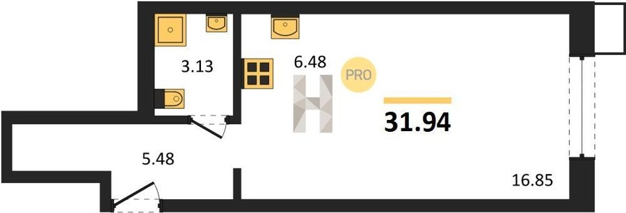 Площадь от 23.8 м2