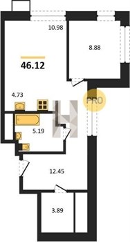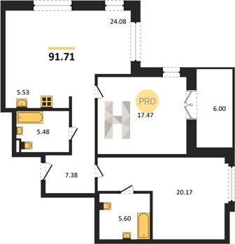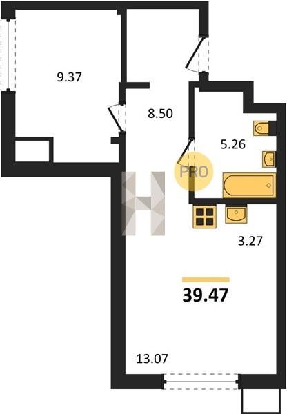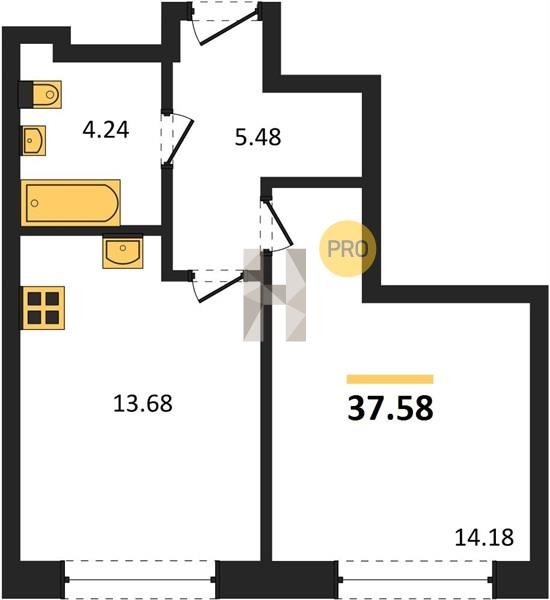 Площадь от 37.52 м2