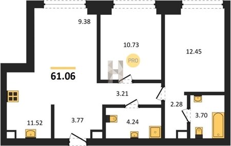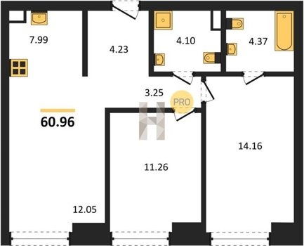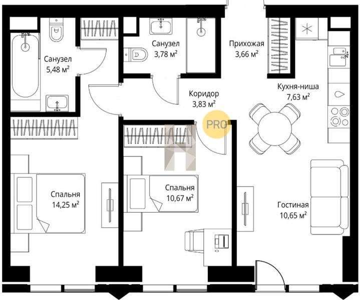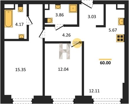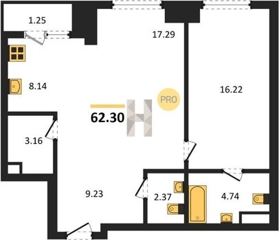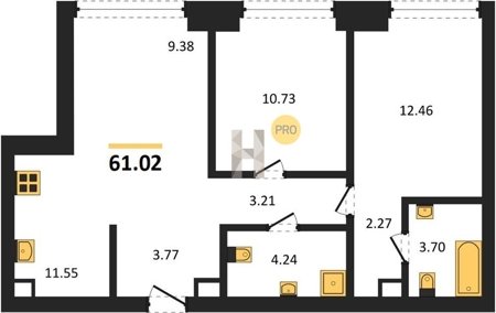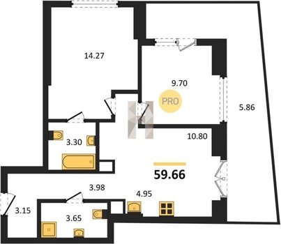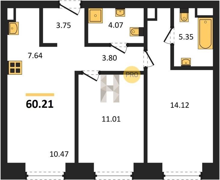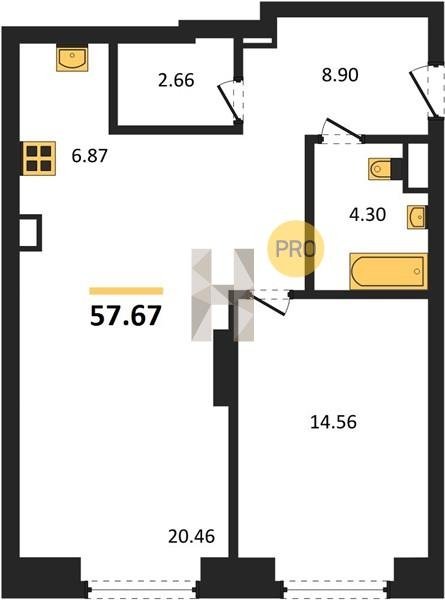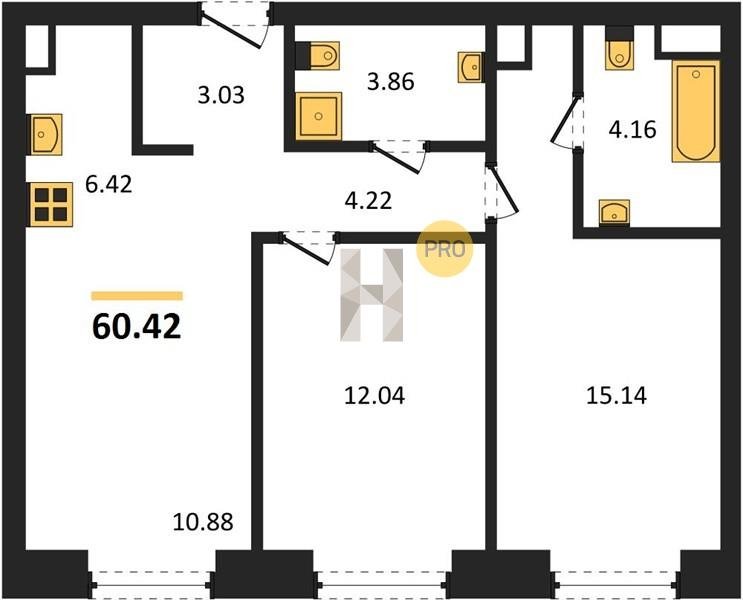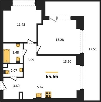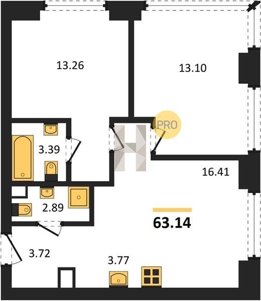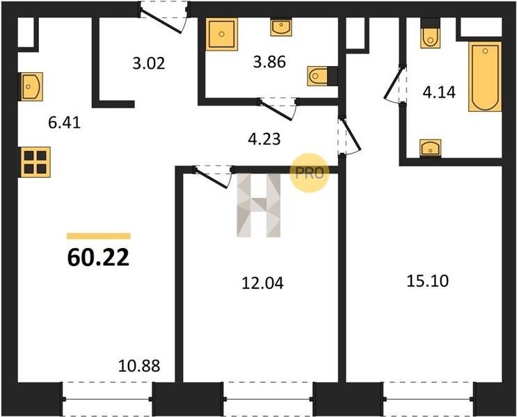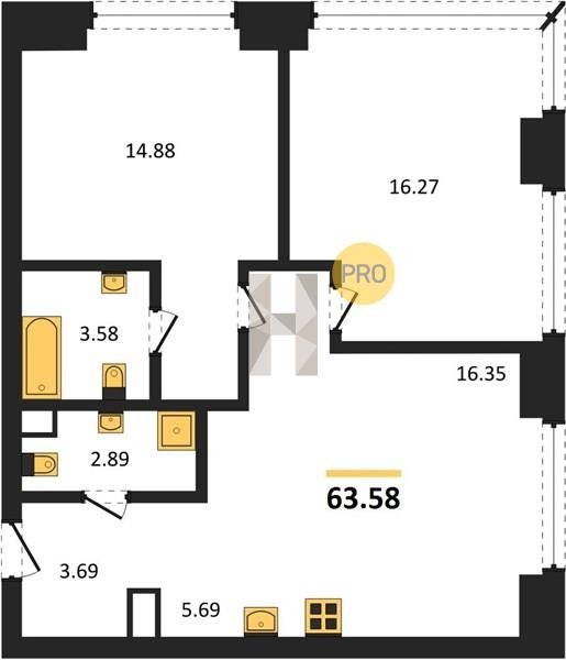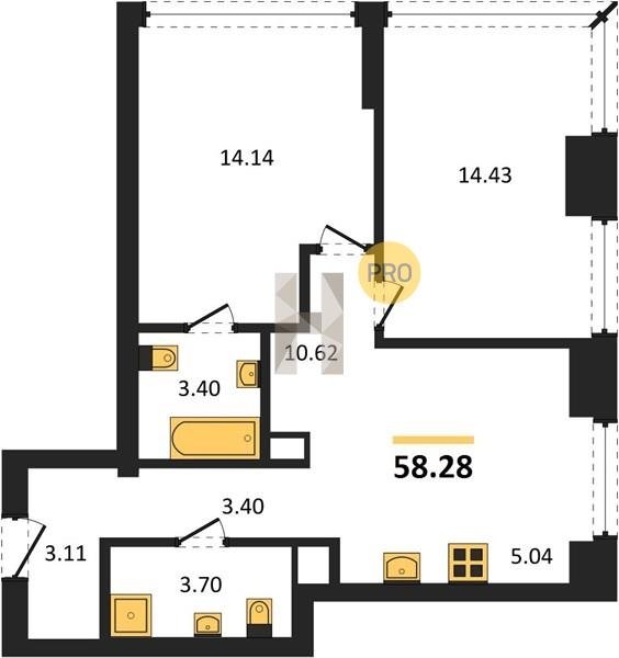 Площадь от 58.09 м2
