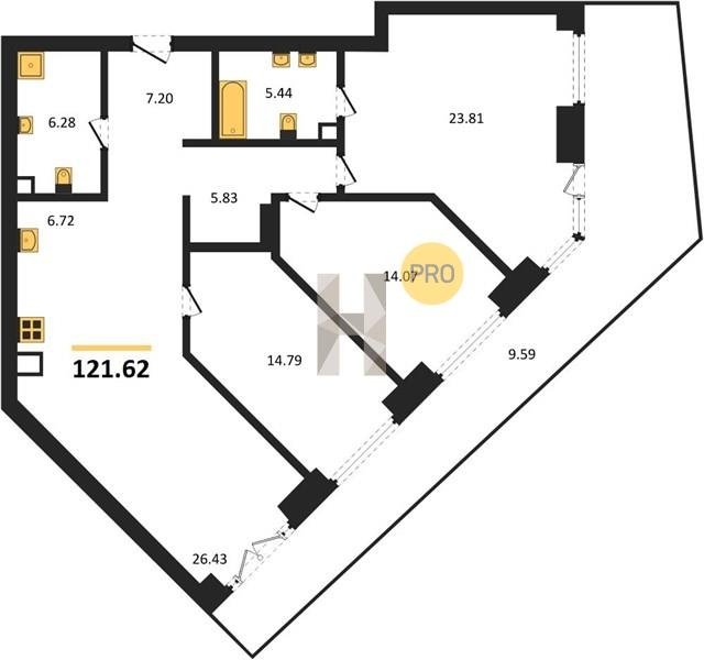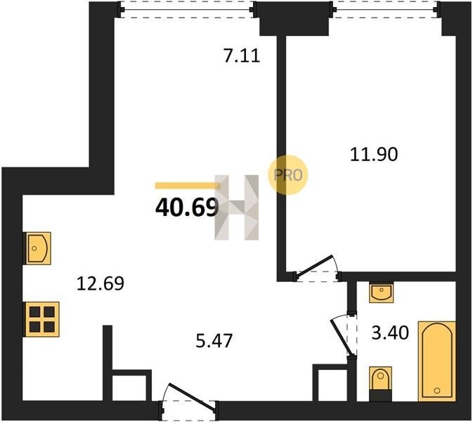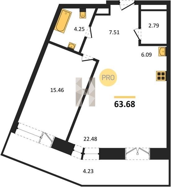 Площадь от 22.6 м2