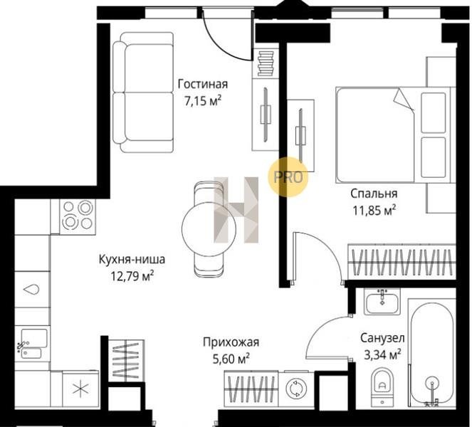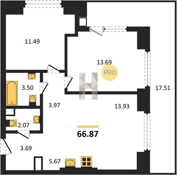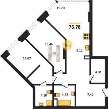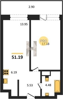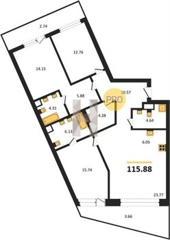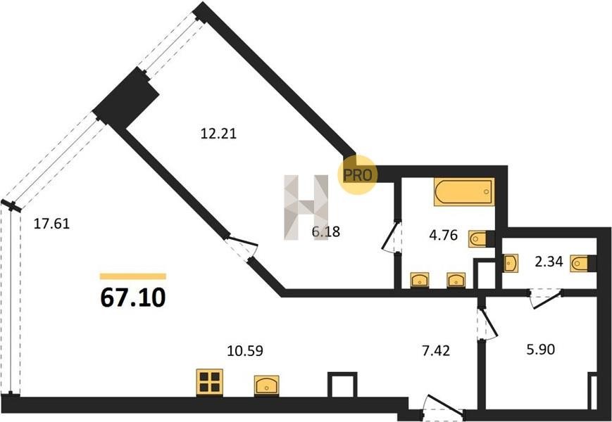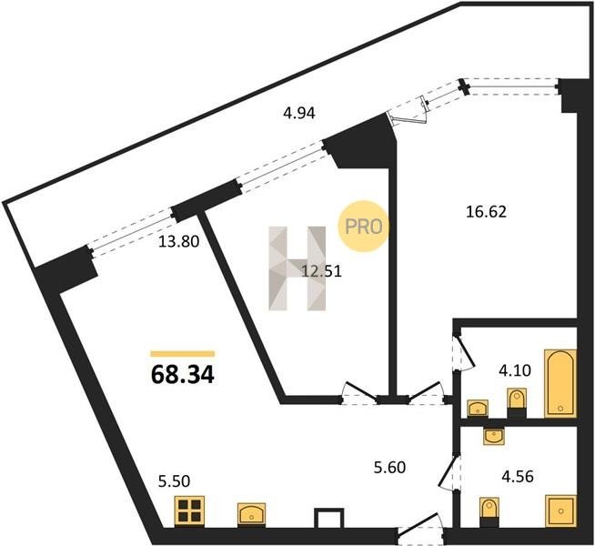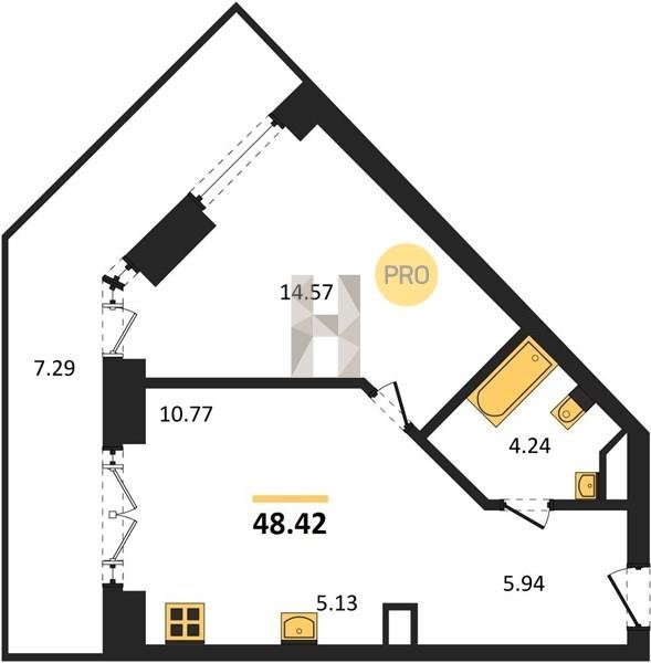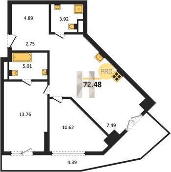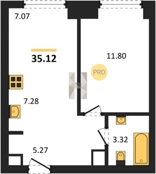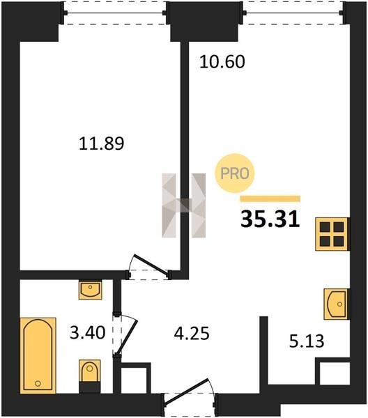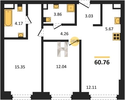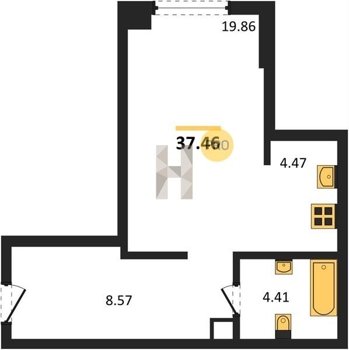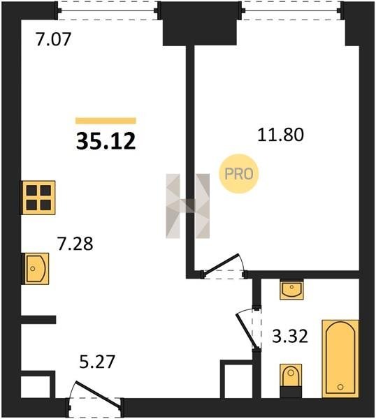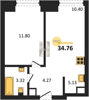 Площадь от 34.76 м2
