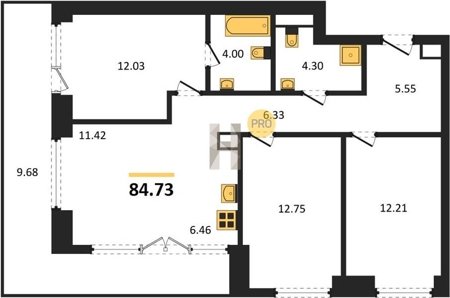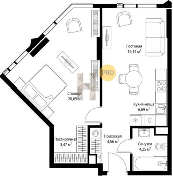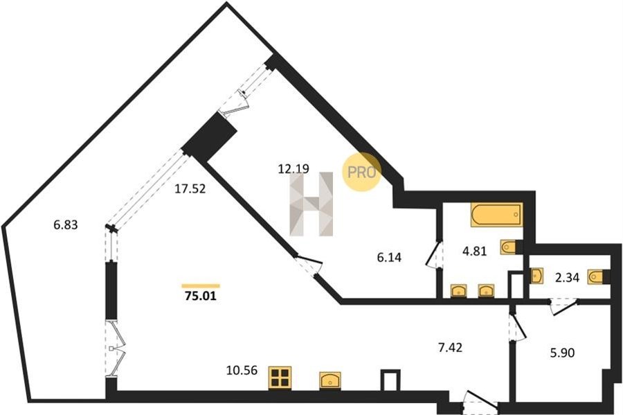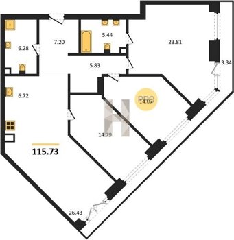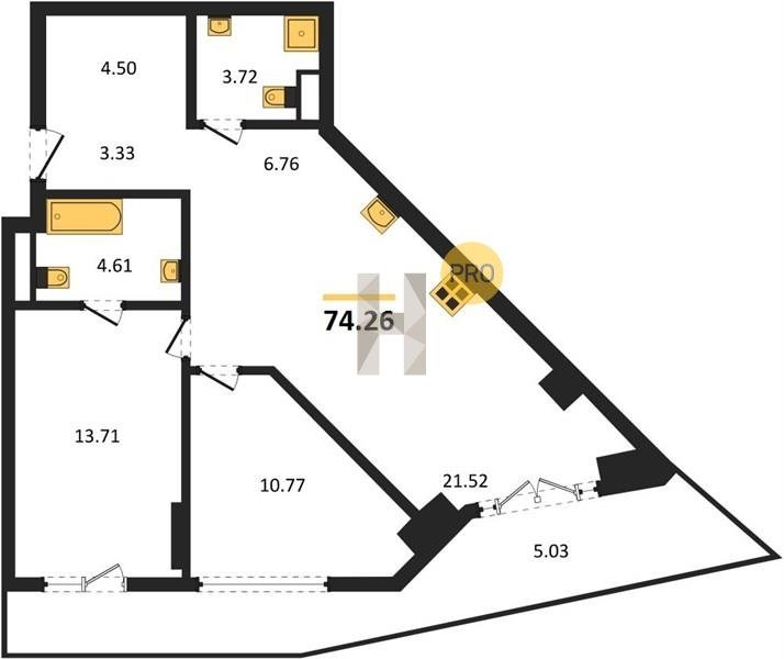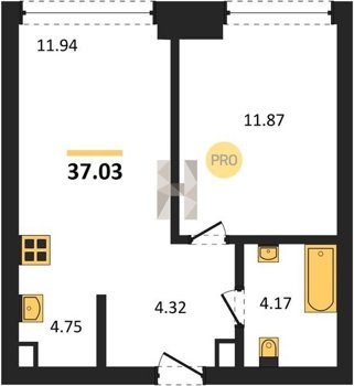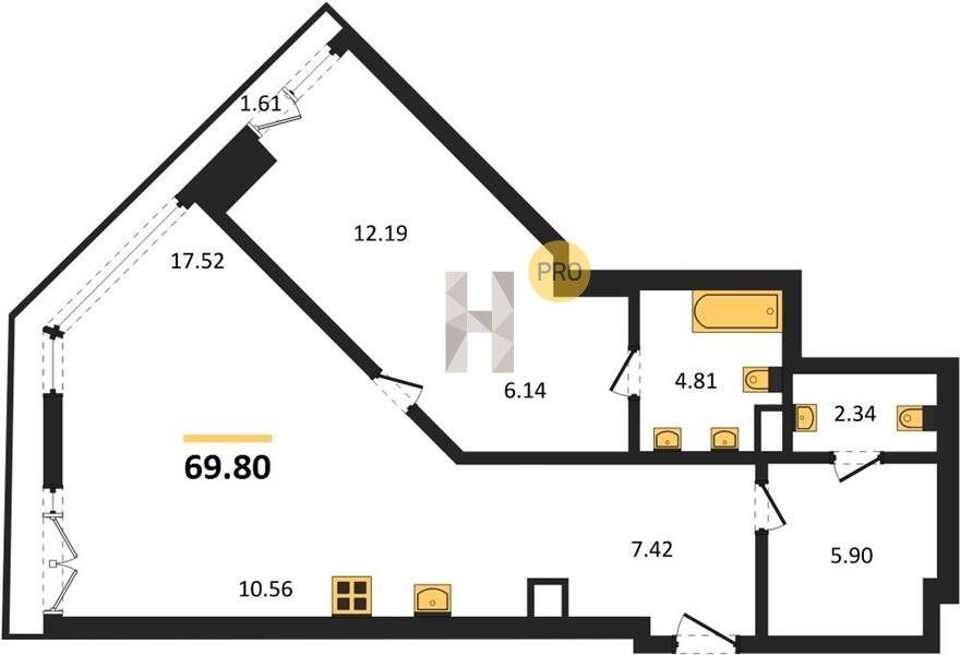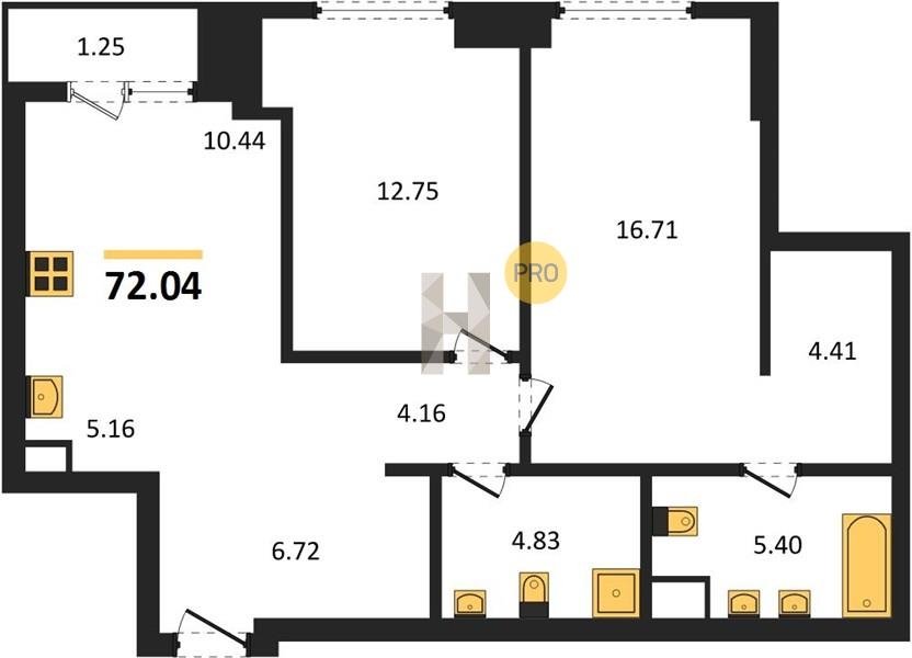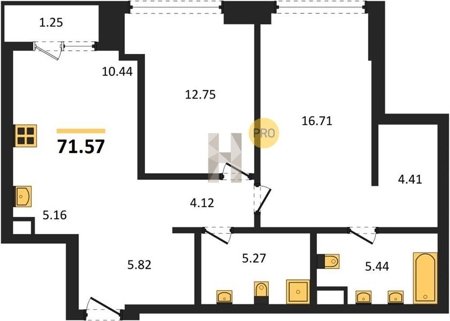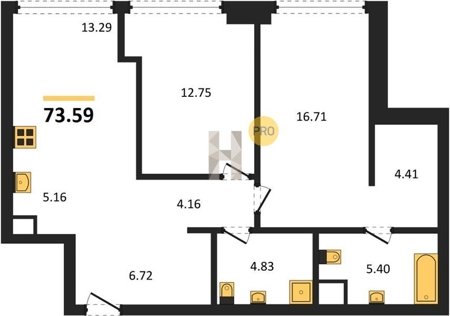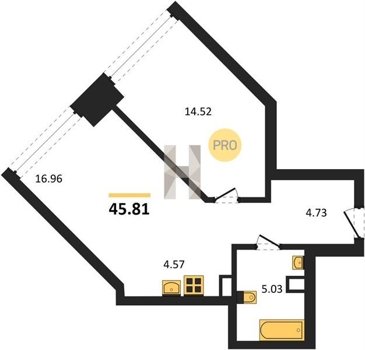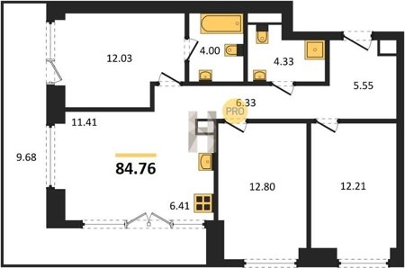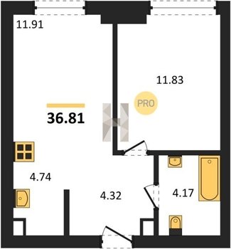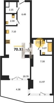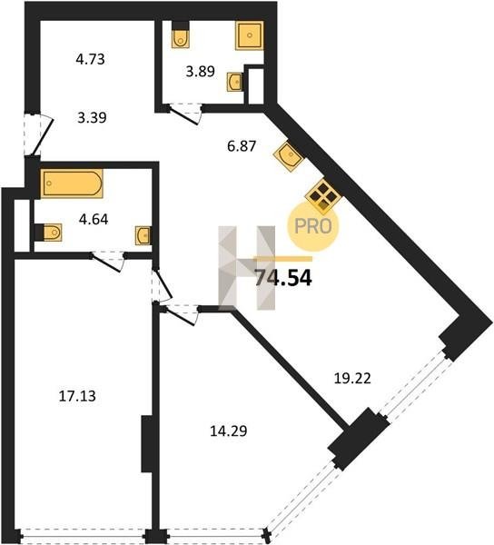 Площадь от 34.76 м2