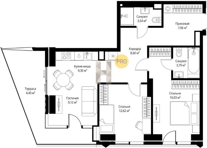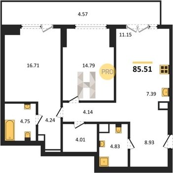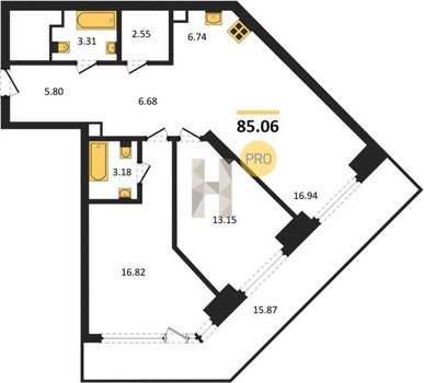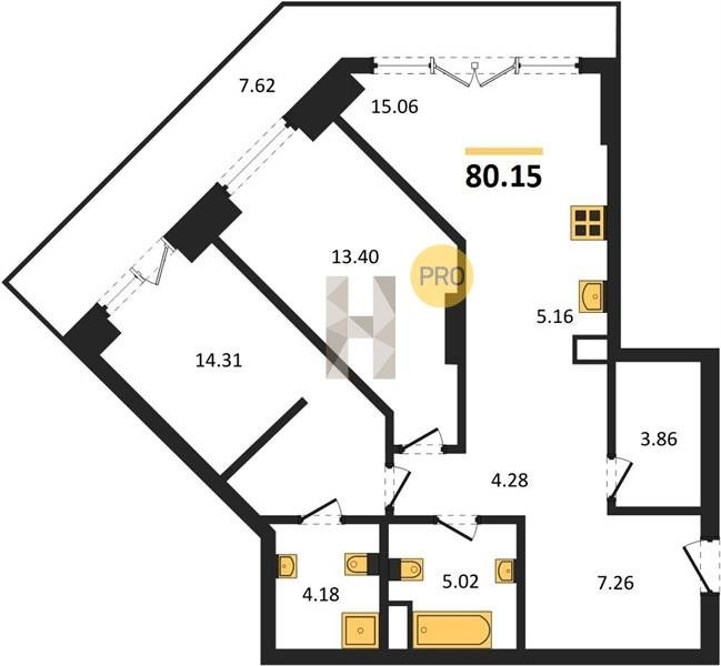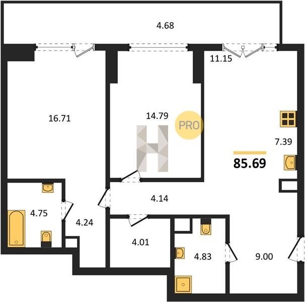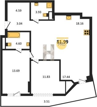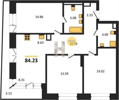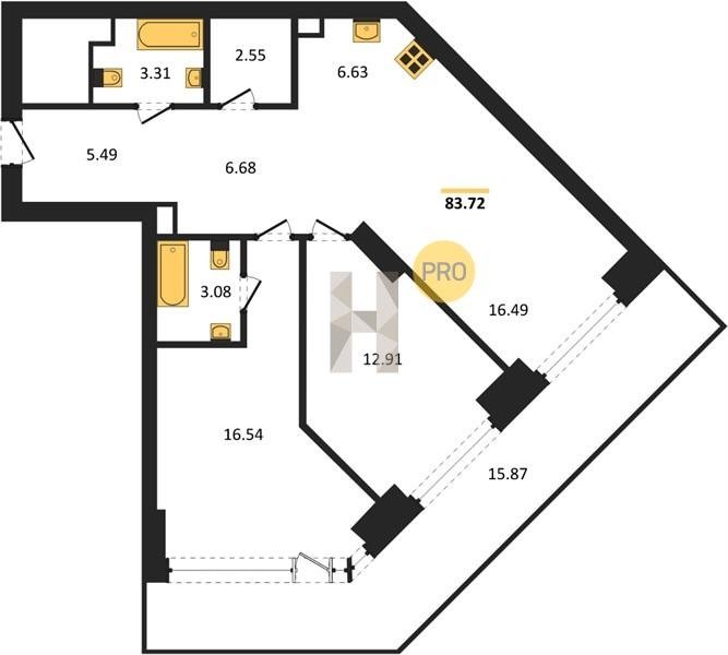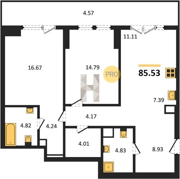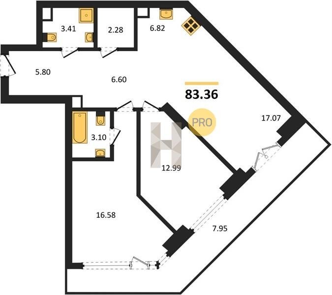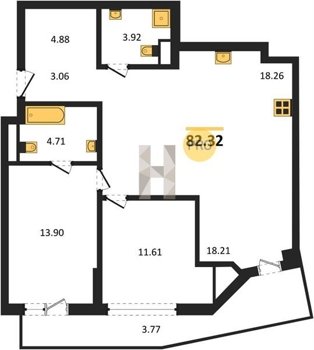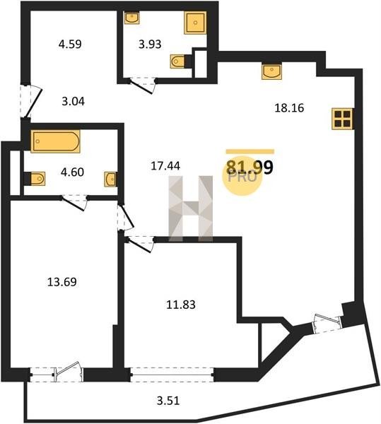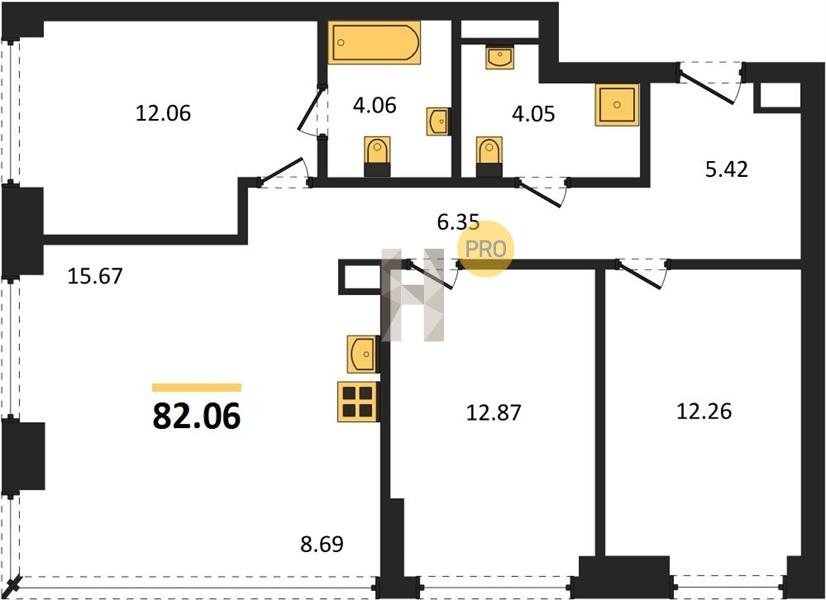 Площадь от 82.06 м2