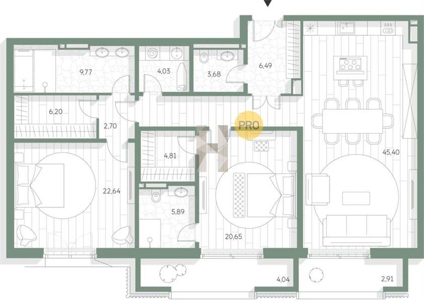 с отдельной входной группой, террасами и очень высокими потолками до 4,65 м.