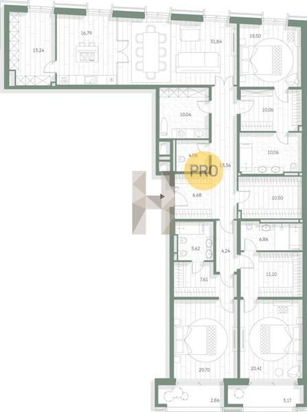 французскими балконами открытого типа, варианты с тремя спальнями и панорамным