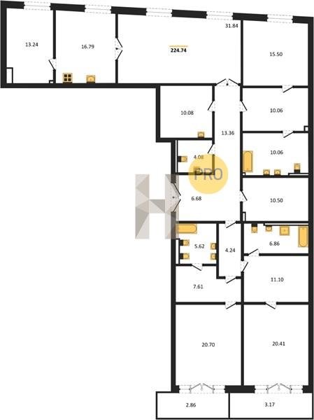 установка интеллектуальной системы «Умный дом», полное оснащение санузлов и кухонь.