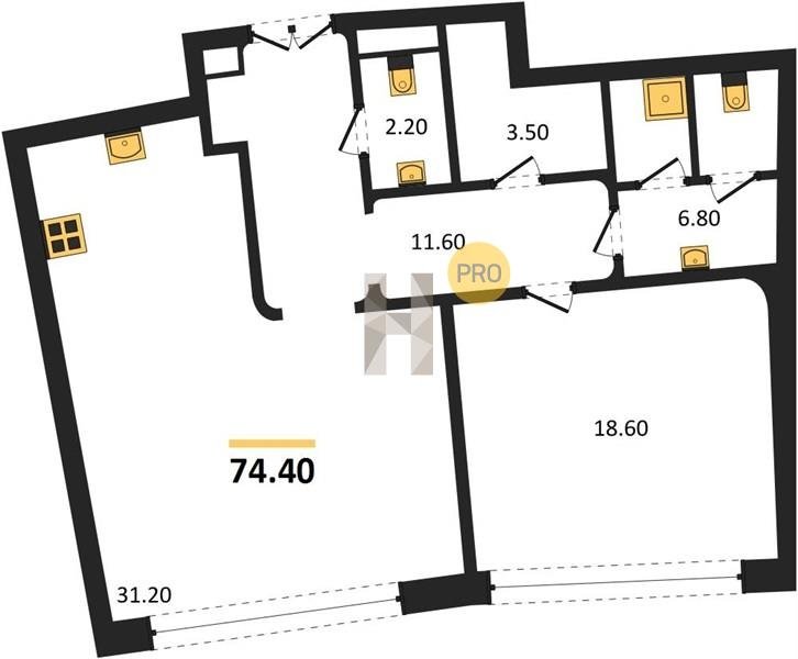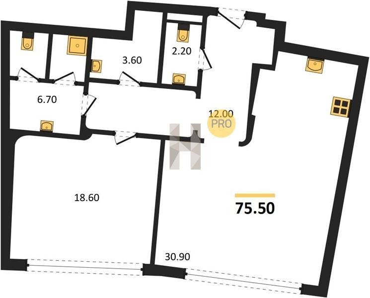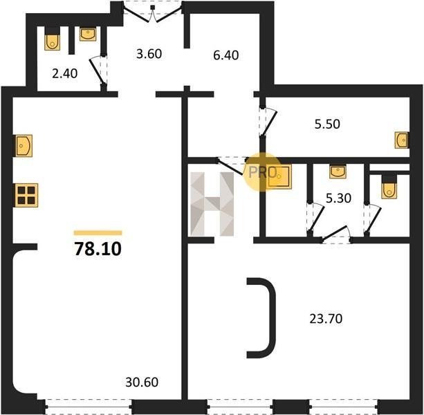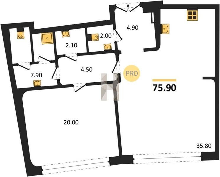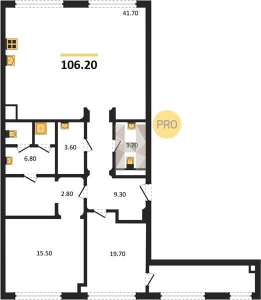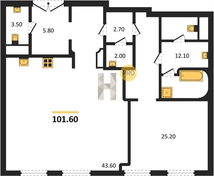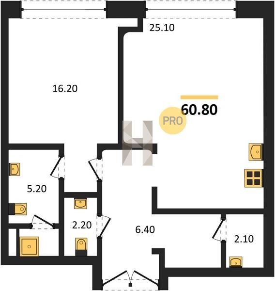 Площадь от 60.8 м2