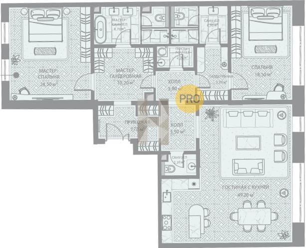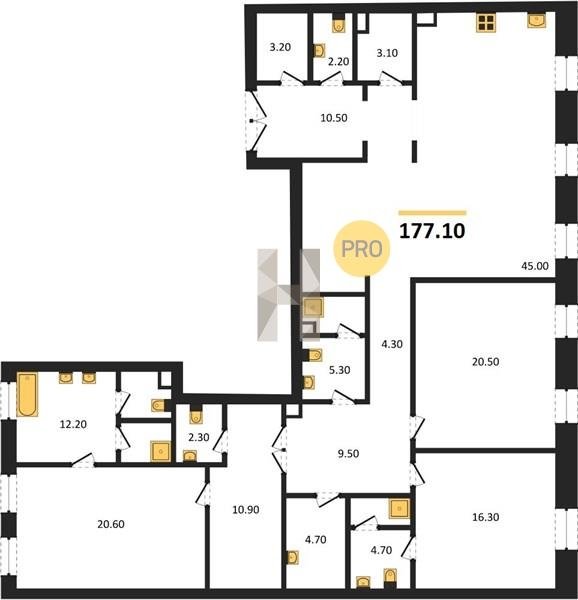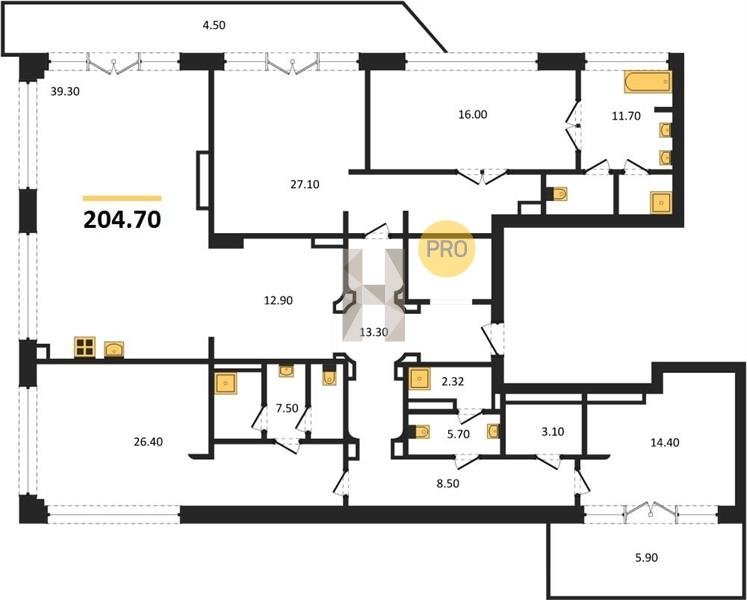 Площадь от 204.7 м2