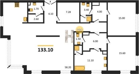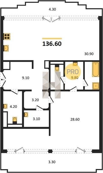 Площадь от 130.4 м2