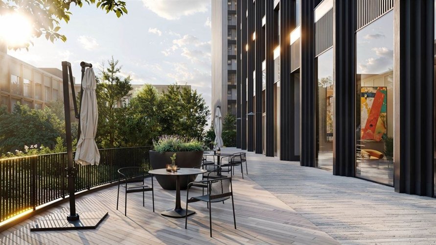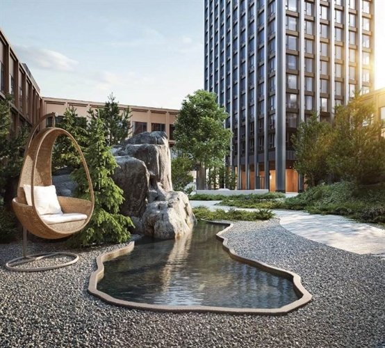 водоем, площадка для йоги, уличная терраса, куда можно подняться прямо из двора