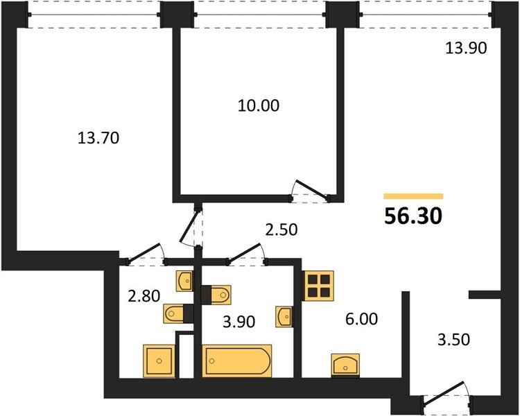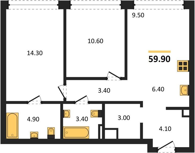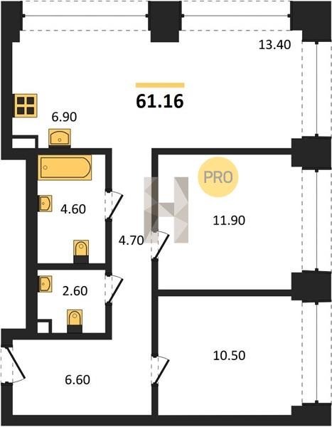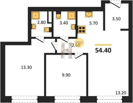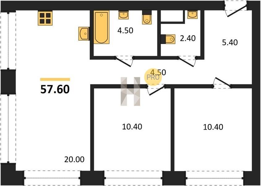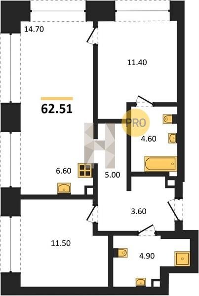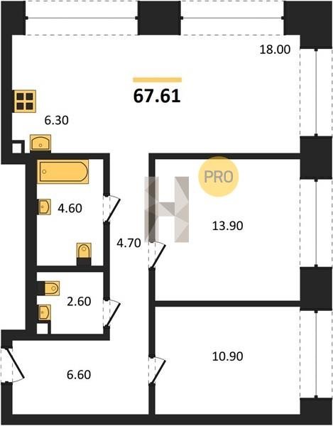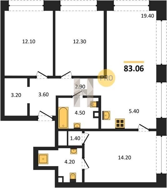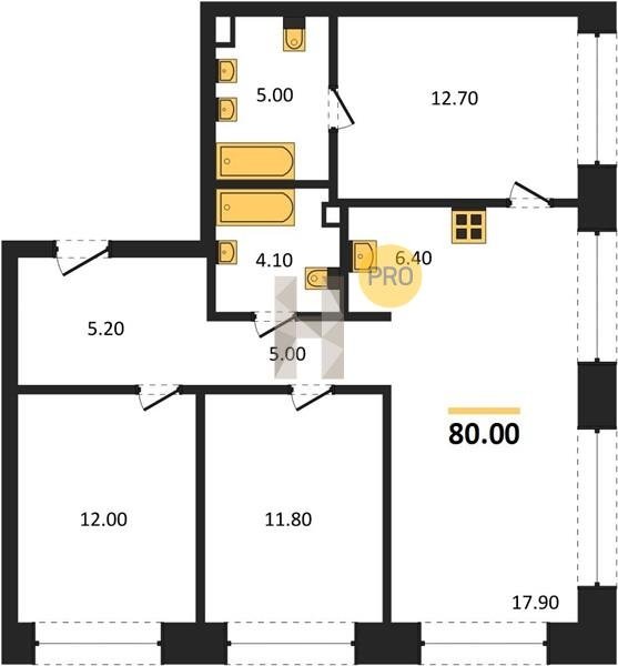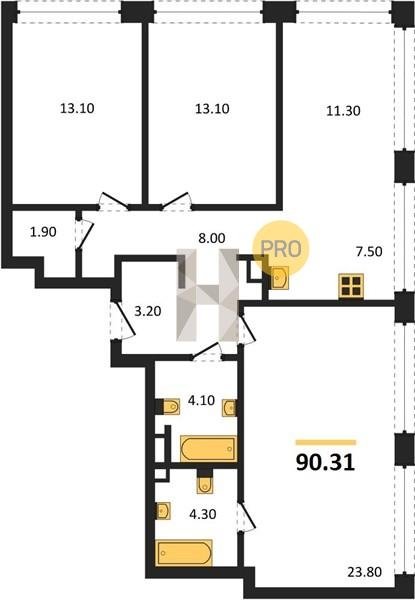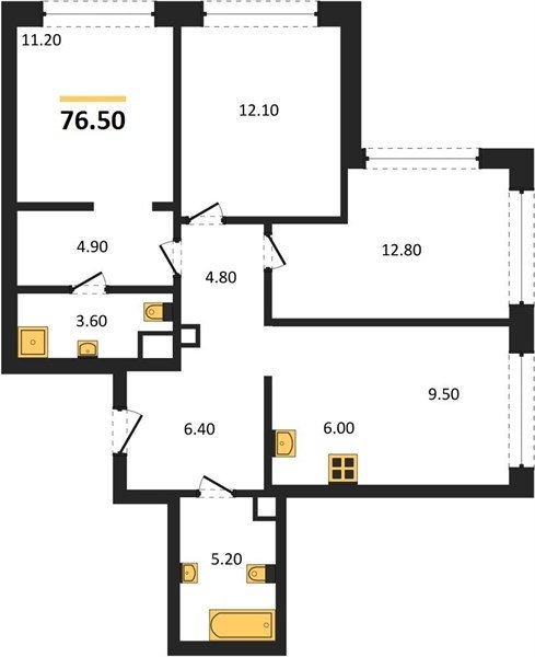 Площадь от 76.5 м2