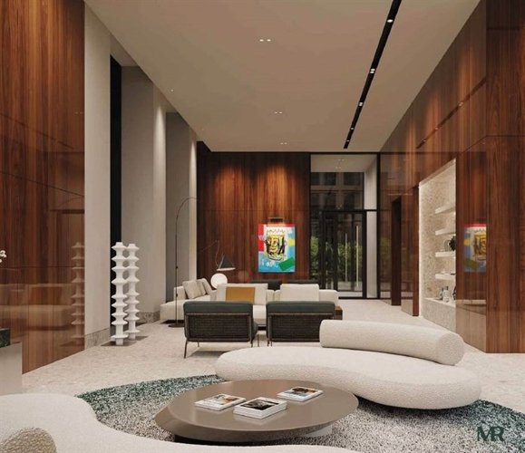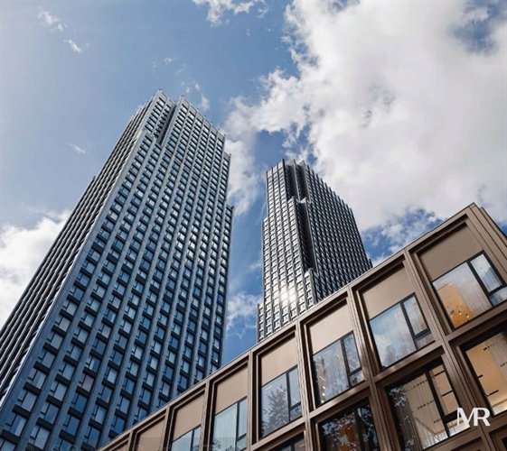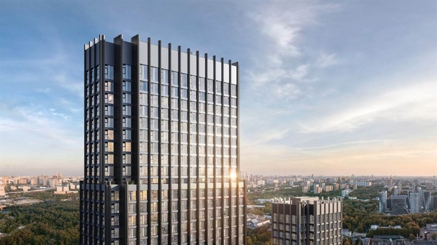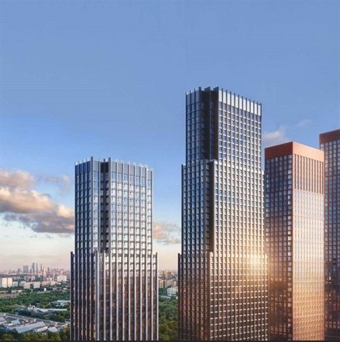 три жилых корпуса переменной этажности: 18, 45 и 59 этажей. Они объединены трехэтажным