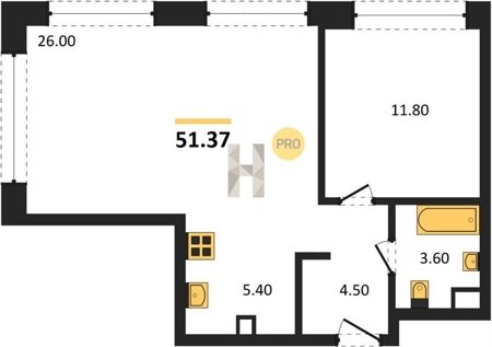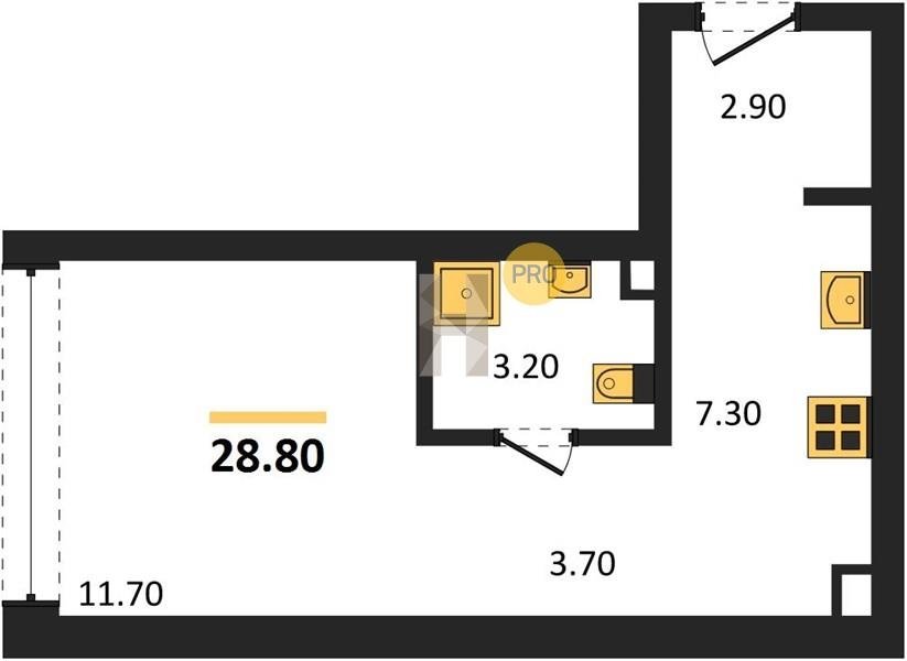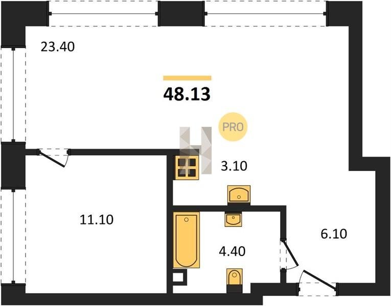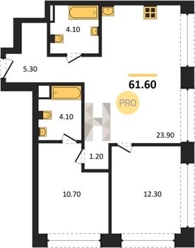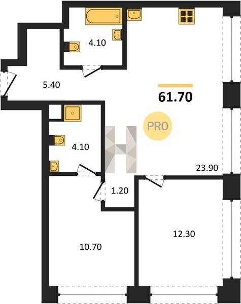 Площадь от 23.7 м2