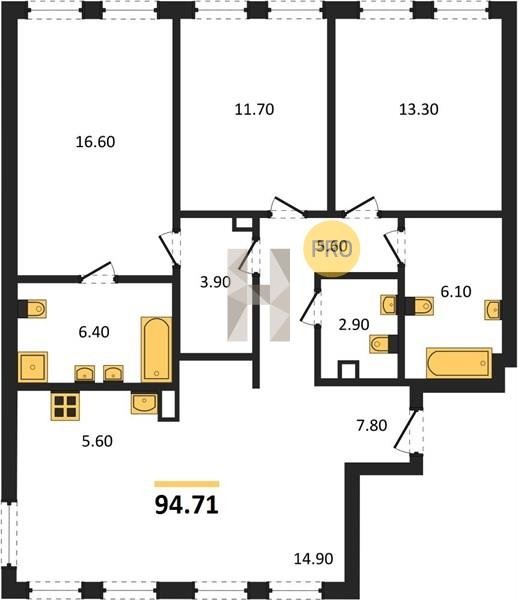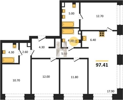 Площадь от 97.41 м2
