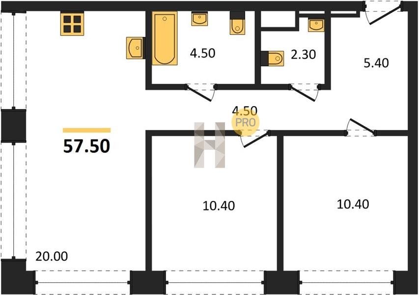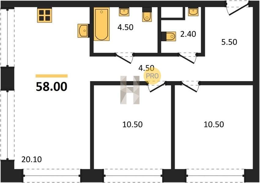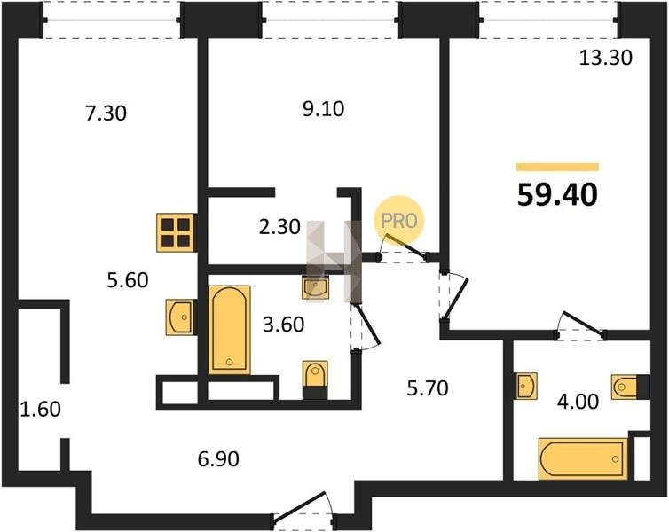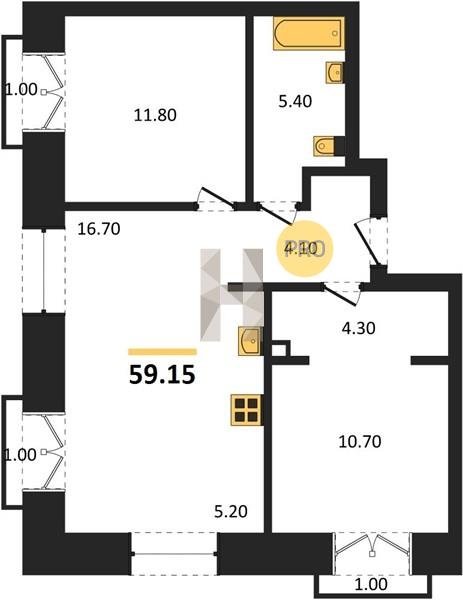 Площадь от 49.2 м2