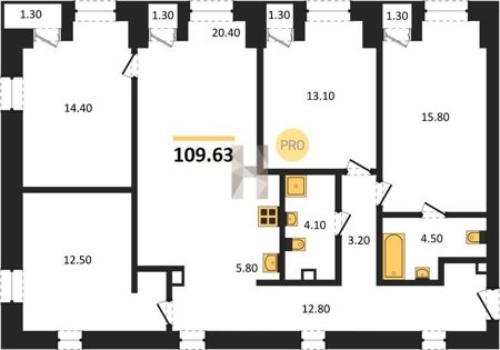 Площадь от 102.1 м2