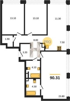 Площадь от 31.05 м2