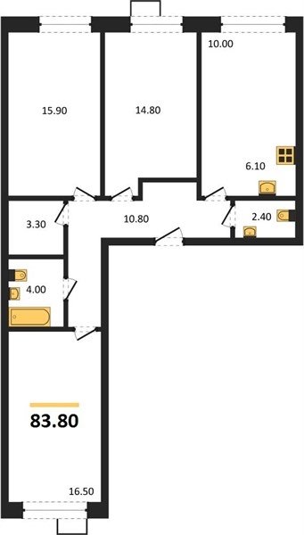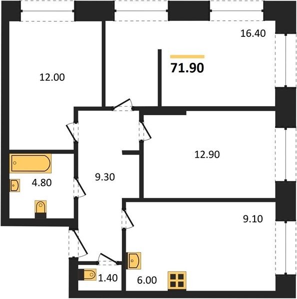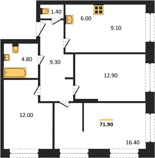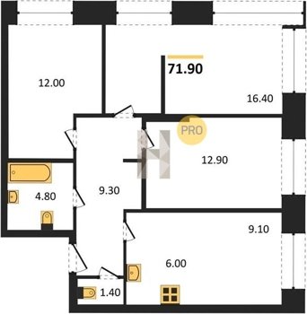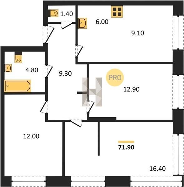 Площадь от 71.9 м2
