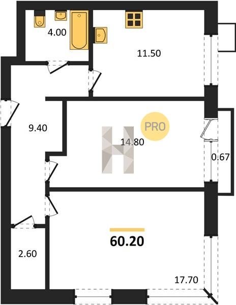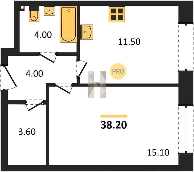 Площадь от 38.2 м2