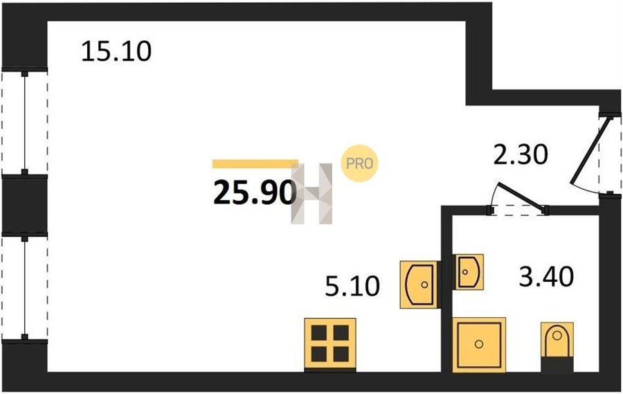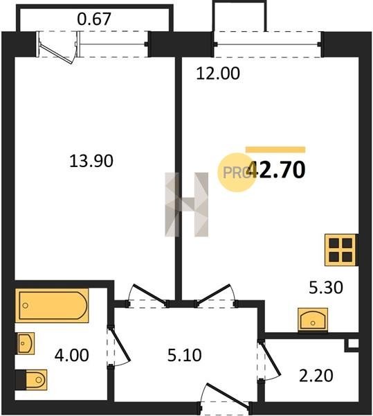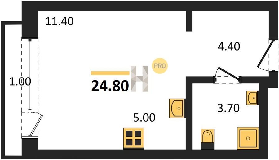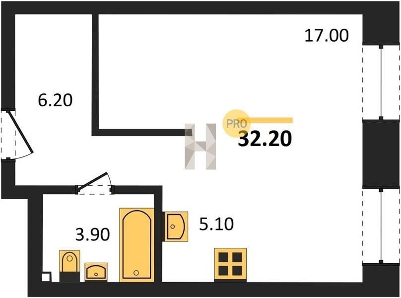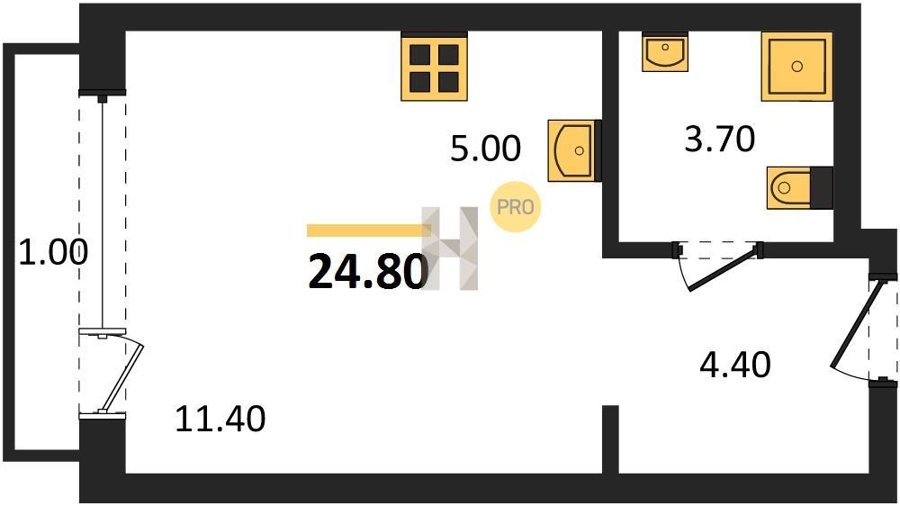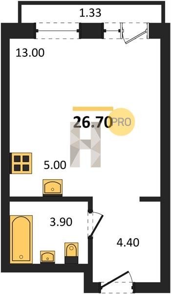 Площадь от 24.3 м2