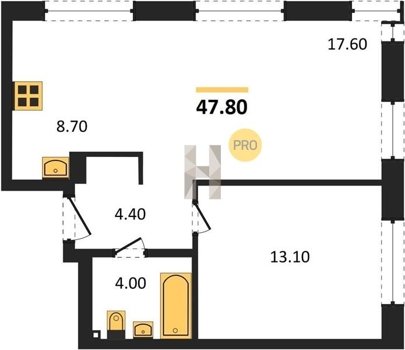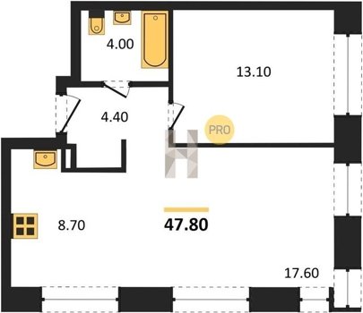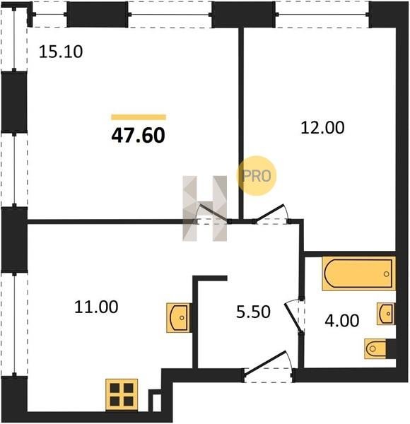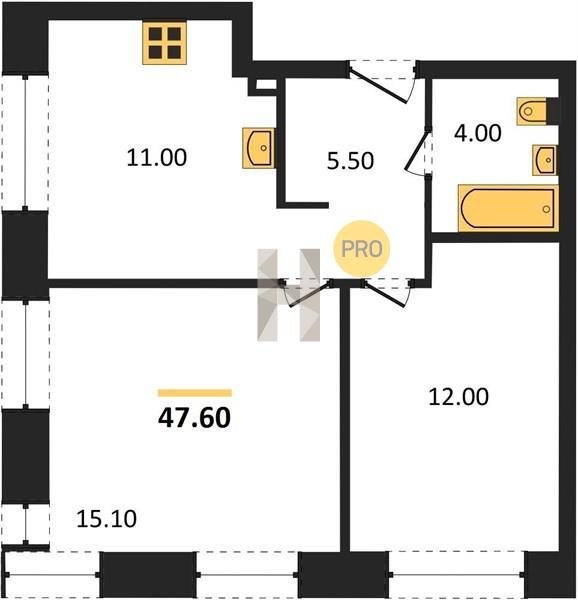 Площадь от 47.6 м2