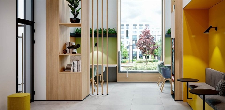 В лобби вырастает до многофункционального общественного пространства, которое становится продолжением каждой квартиры. В центральном лобби каждого корпуса есть коворкинг с удобными рабочими местами, кофе-поинтом и приватной зоной для бесед. Через холл от коворкинга расположена двухэтажная детская зона – с мягкими татами и мини-скалодромом, книжками и играми, способными увлечь ребятню, когда на улице дождь стеной. Здесь же – комната матери и ребенка. И колясочная рядом. Кстати придется и гостевой санузел. Вход в лобби возможен не только с улицы, но и со двора. Поэтому можно прибежать после игры в волейбол, вымыть руки и быстро вернуться во двор, чтобы сгрызть с друзьями по яблоку. Велосипедистам лобби нужны, чтобы попасть на минус первый этаж: там большая комната для хранения колесного инвентаря и станции для самостоятельного техобслуживания велосипедов. А собаководы оценят комнату для мойки лап: любимый питомец больше не будет оставлять грязные следы в квартире.