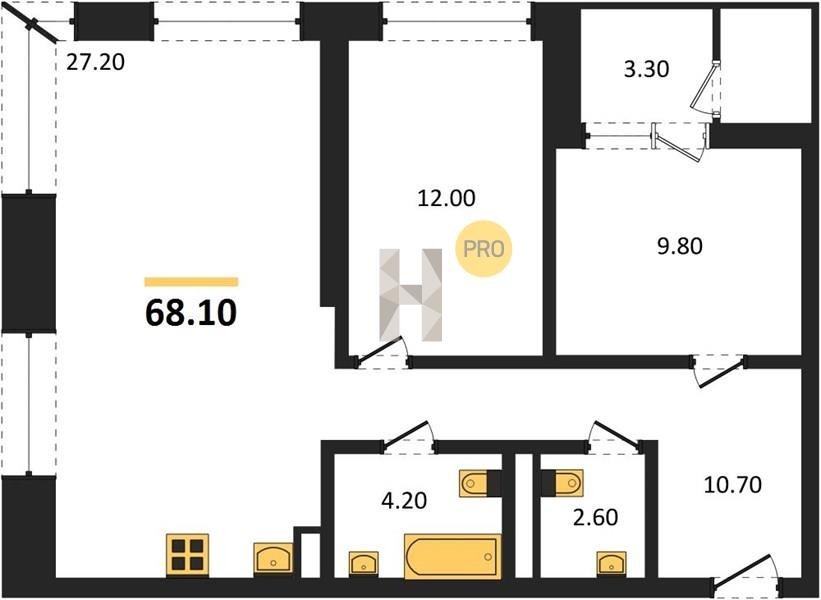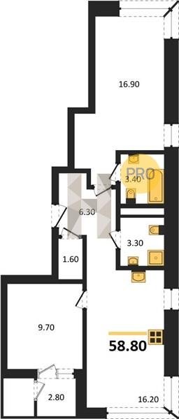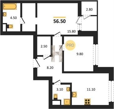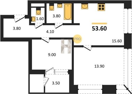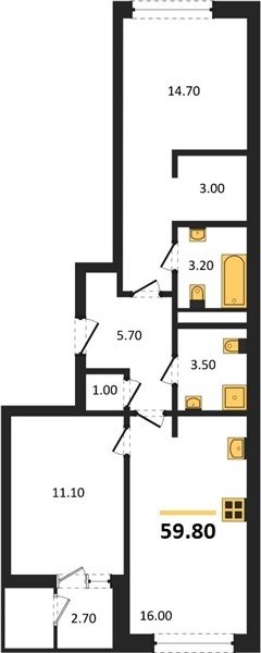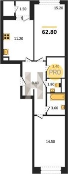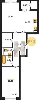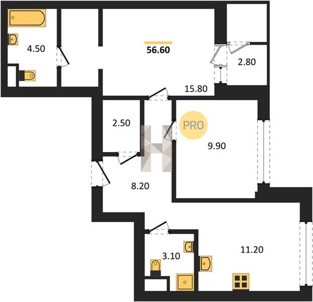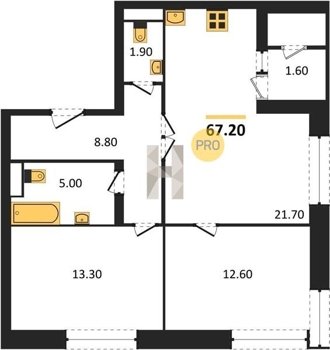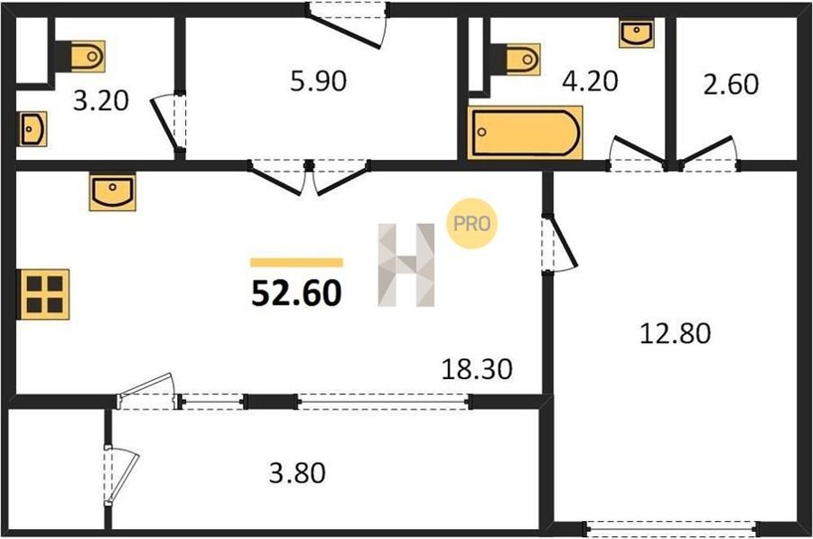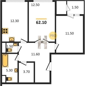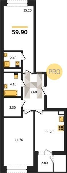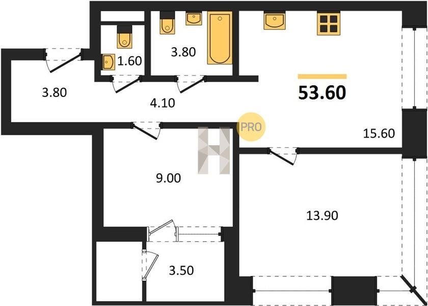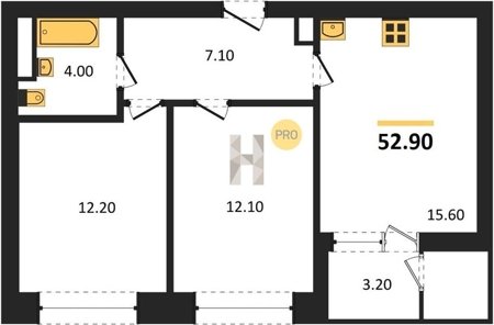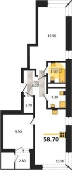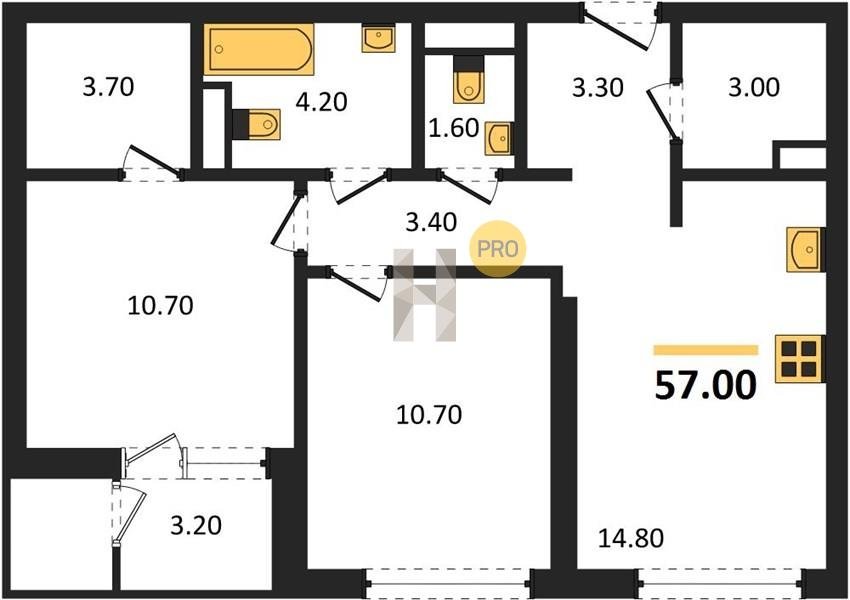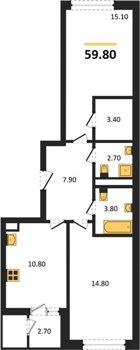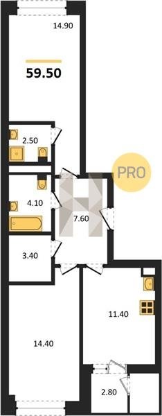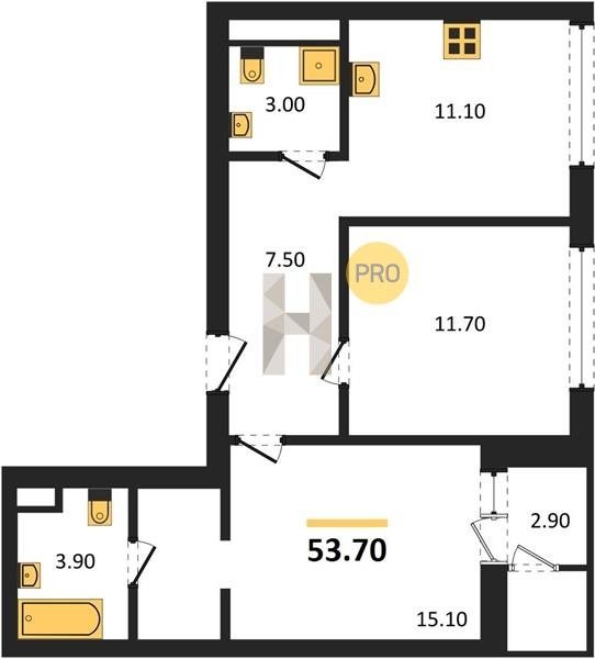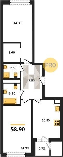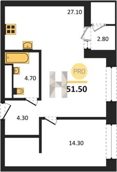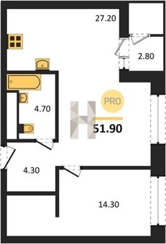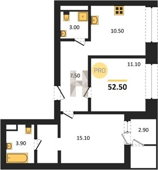 Площадь от 52.5 м2