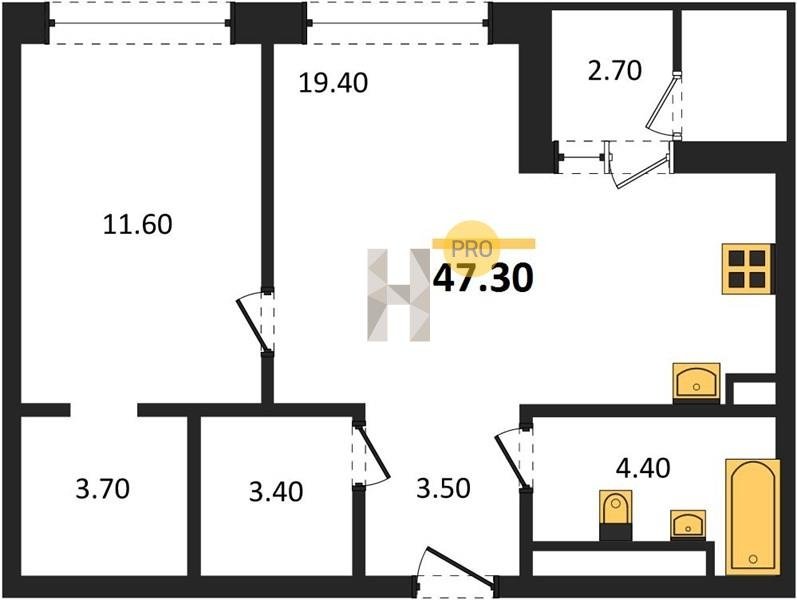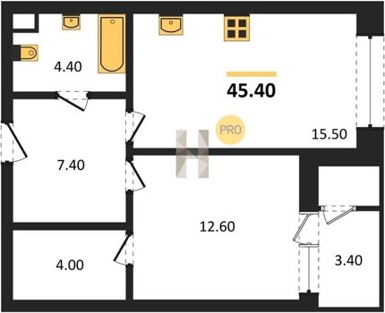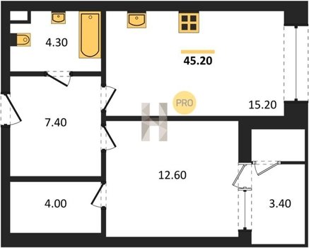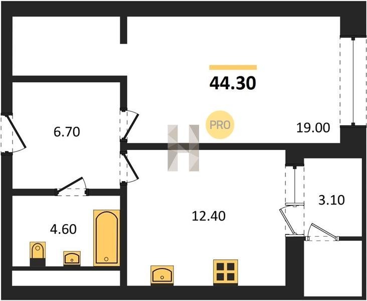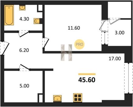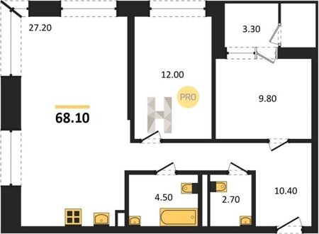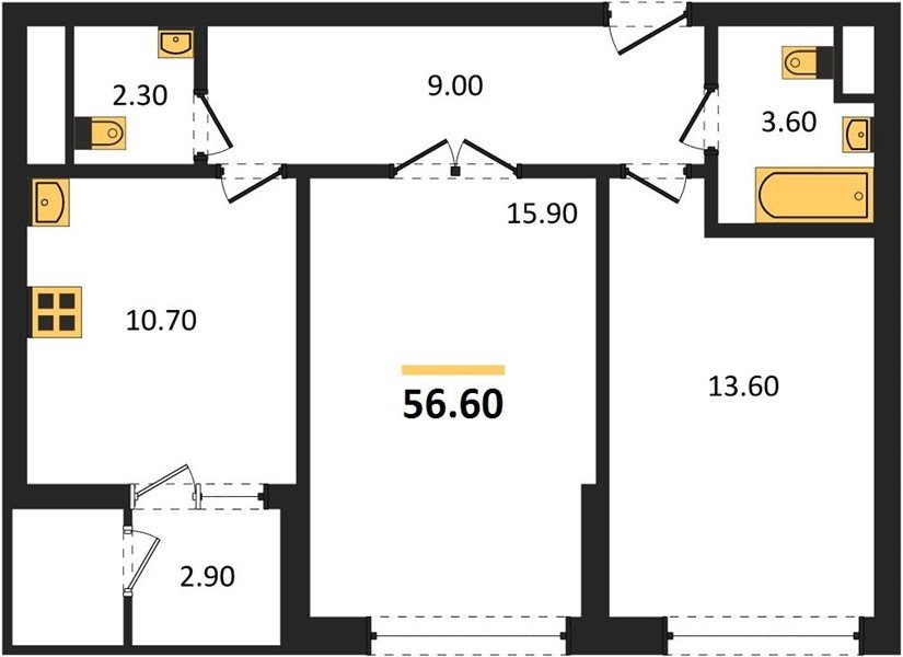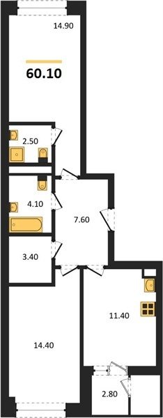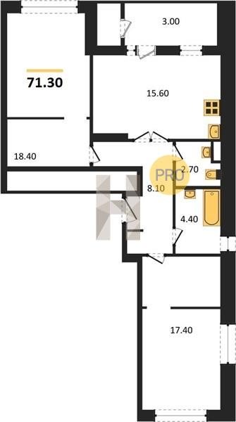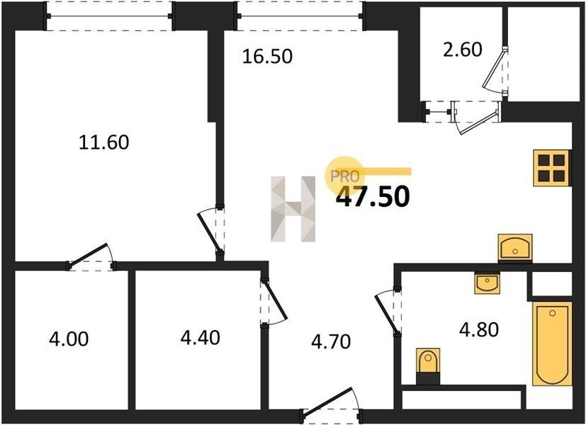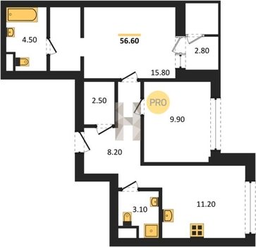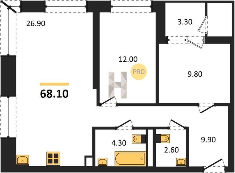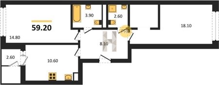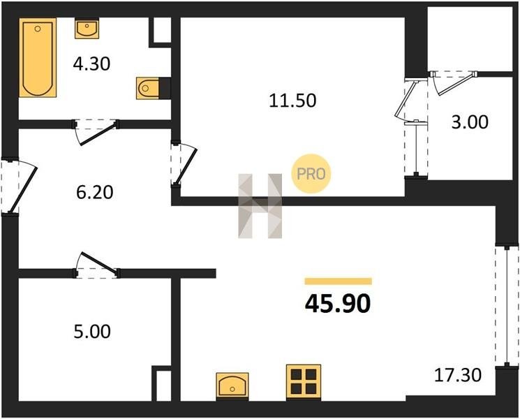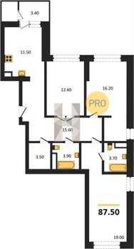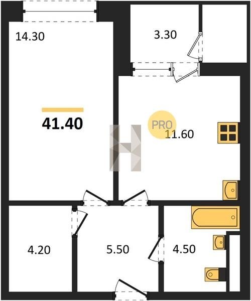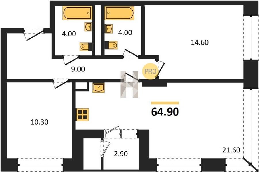 Площадь от 52.5 м2