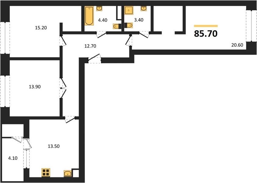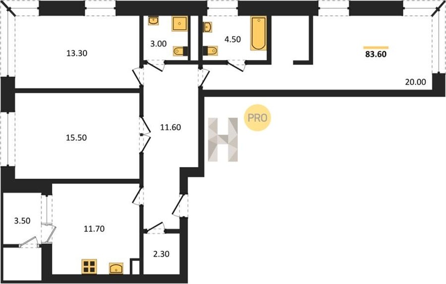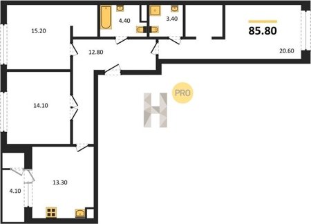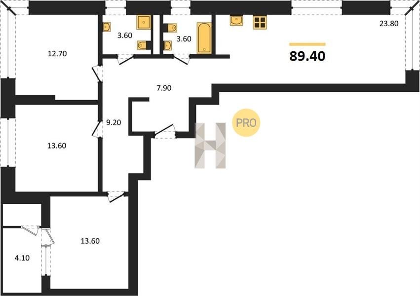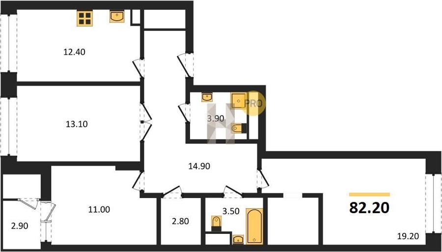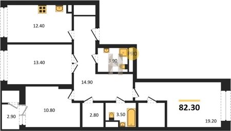 Площадь от 82.2 м2
