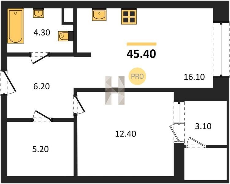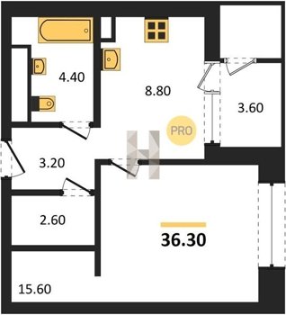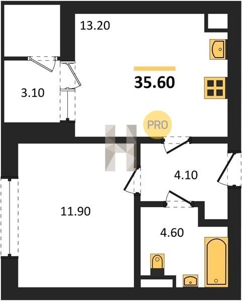 Площадь от 35.6 м2