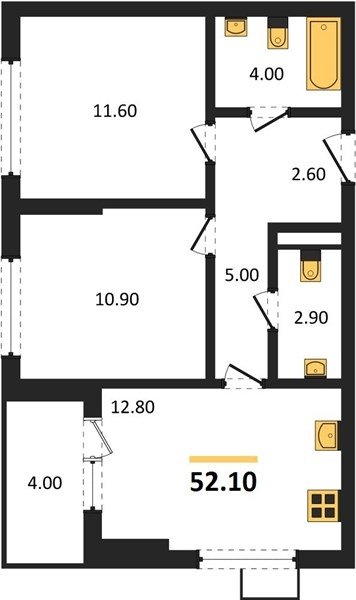 Площадь от 52.1 м2
